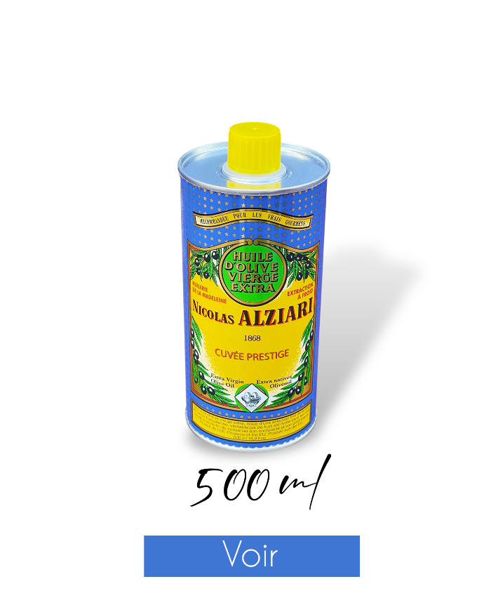 Tout commença il y a plusieurs décennies, quand la famille Alziari entreprit de créer une huile d’olive d’exception. De cette passion naquit un nectar précieux : la Cuvée Prestige. Fruité, délicat et équilibré, il séduisit les palais les plus raffinés… mais son destin allait être lié à une figure emblématique de l’Histoire de France.